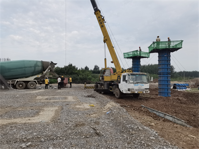 为确保首根墩柱顺利浇筑,试验室对拌和站原材料进行了检测,并分别对出机和到达现场混凝土进行坍落度、含气量、温度等各项指标检测,确保混凝土的性能质量满足要求。