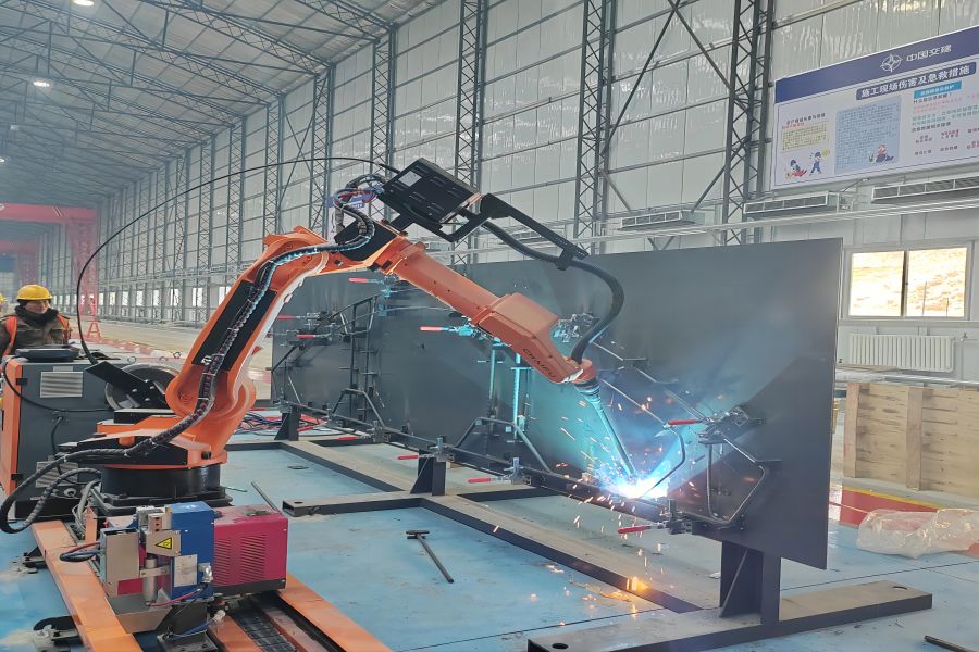 三标总承包部通过引进焊接机器人技术能够实现精确的焊接参数控制,避免人为因素对焊接质量的影响,从而提高焊接质量和产品一致性;焊接机器人可以实现连续工作,提高仰拱钢筋加工生产效率。焊接机器人的使用可以减少人工成本,降低企业的生产成本。