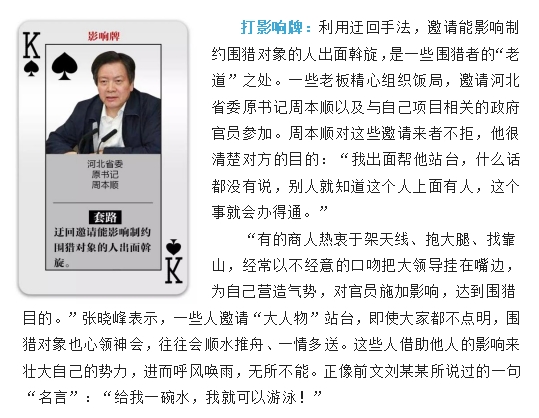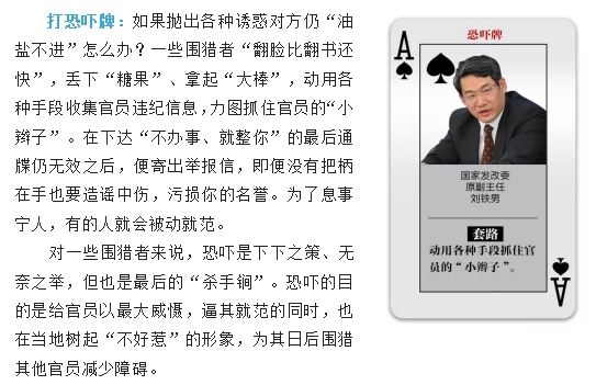 采取怎样的猎取手段,对围猎者来说是很有讲究的。“苍蝇专叮有缝的蛋。”围猎者笑里藏刀,专挑软肋,因人下套,能炮制出“总有一款适合你”的“牌路”。面对这种潜移默化的“围猎”方式,党员领导干部须臾不可不警惕,只有心中保持对纪法的敬畏,识别别有用心的“围猎”者,自觉净化朋友圈,以德交友,防损友、结益友,才能真正做到初心不改、底线不失。