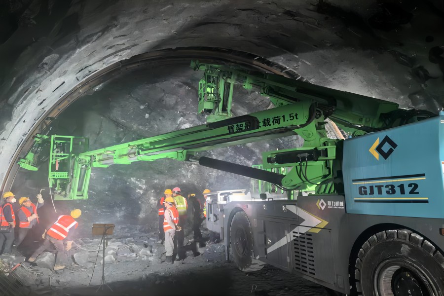 三臂凿岩台车和拱架安装台车发挥其灵活性、安全性、低能耗、高进尺的优势,实现机械化、安全化、高效率施工,为莫逊山隧道顺利贯通提供有力帮助。同时也是为实现“十四五”建设交通强国、创建品质工程目标的具体体现。